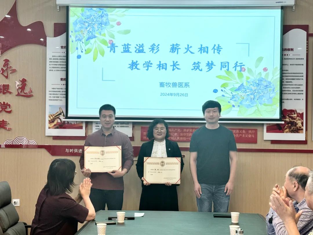 以心攜新,青藍(lán)相聚,共育滿園桃李。為深入貫徹落實(shí)黨的二十大精神,加強(qiáng)教師隊(duì)伍建設(shè),促進(jìn)青年教師全面發(fā)展,充分發(fā)揮優(yōu)秀教師的示范和引領(lǐng)作用,弘揚(yáng)踐行“傳、幫、帶”精神,提高畜牧獸醫(yī)系教育教學(xué)質(zhì)量。9月26日,畜牧獸醫(yī)系黨支部在牧韻樓舉行了2023-2024學(xué)年“青藍(lán)工程”成果總結(jié)大會(huì)暨畜牧獸醫(yī)系新入職教師“青藍(lán)工程”師徒結(jié)對(duì)儀式。