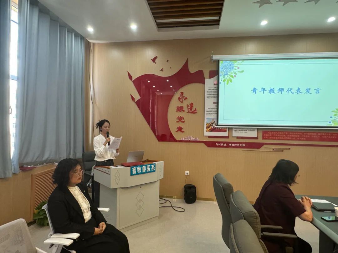 隨后,優(yōu)秀導(dǎo)師代表趙福軍老師發(fā)言,在總結(jié)上學(xué)期青藍(lán)工程成果的基礎(chǔ)上,他對(duì)青年教師未來的工作提出了明確的要求和殷切的期望,他指出:青年教師們要繼續(xù)發(fā)揚(yáng)畜牧獸醫(yī)系的優(yōu)良傳統(tǒng),做專業(yè)、做學(xué)問、做育人,求實(shí)探索、踔厲奮發(fā),為畜牧獸醫(yī)系爭(zhēng)取更大的光榮。